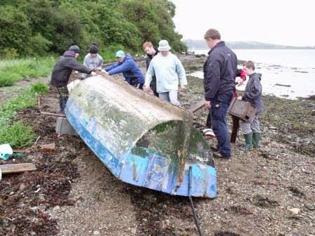 Boats were generally hauled out on some of the high tides such as the equinox springs in late September. These tended to be a community event, groups of men (and boys) gathering to help to drag up the punts from high water and onto the shoreline. Once up, they would be turned over, keel side up and the gunwales raised off the ground with rocks under them to allow the wind blow under and dry them out.