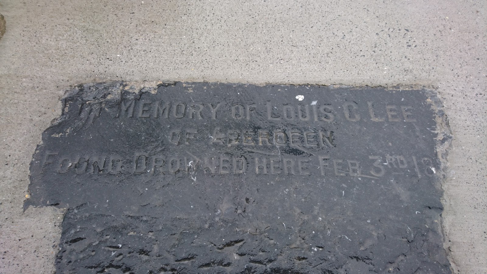 While collecting my daughter from a bus recently I happened across a limestone slab set into the pavement behind the Waterford bus station. It was battered, damaged and out of place, but the inscription was legible. It reads In Memory of Louis C Lee of Aberdeen. Found drowned here Feb 3rd 18. But who was Louis, when exactly did he die and why was a memorial stone set into the footpath for him?