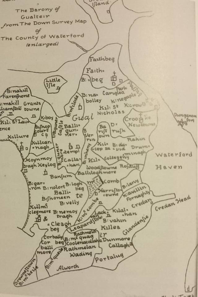 Down Survey map 1655/56 sourced from Niall Byrne’s Book The Irish Crusade For online version see the link above |