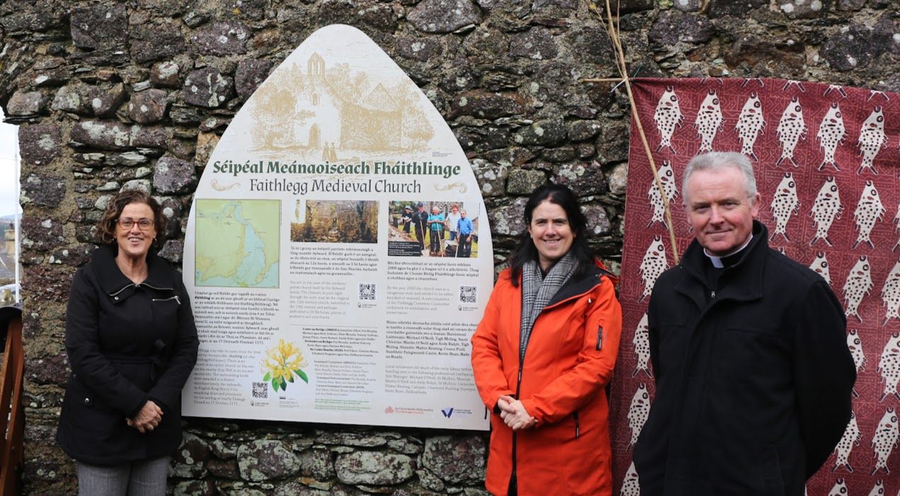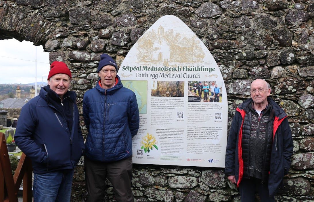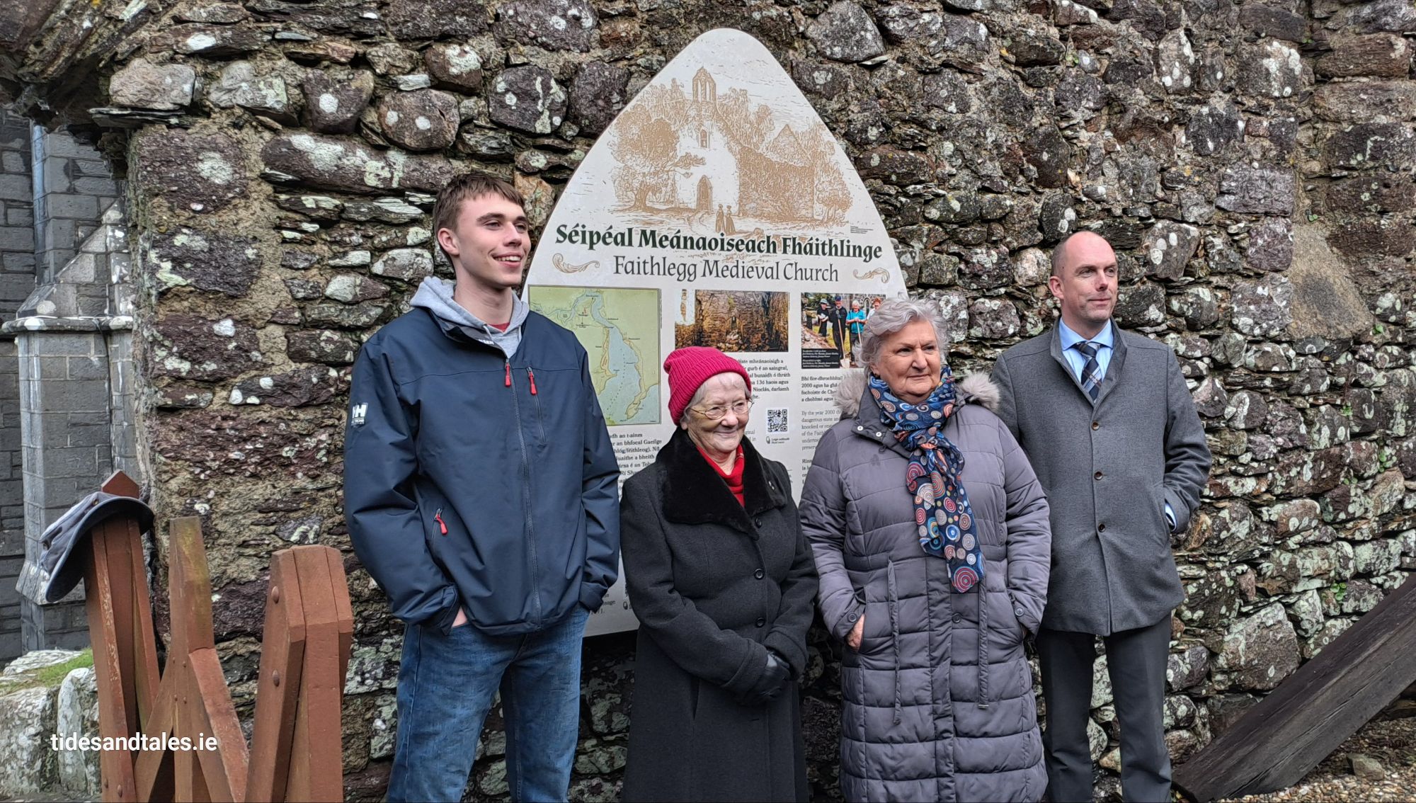 On Thursday, 22nd January 2026, a new interpretation board was unveiled at Old Faithlegg Church. The event was the fulfilment of a promise from over twenty years ago – one that we made when fundraising to maintain and preserve the fabric of the 13th Century Norman era church. Built by the Aylward family, who had their castle nearby, it was reputed to have fallen into ruin after the family were sent “to Hell or to Connaught” by the troops of Oliver Cromwell.
