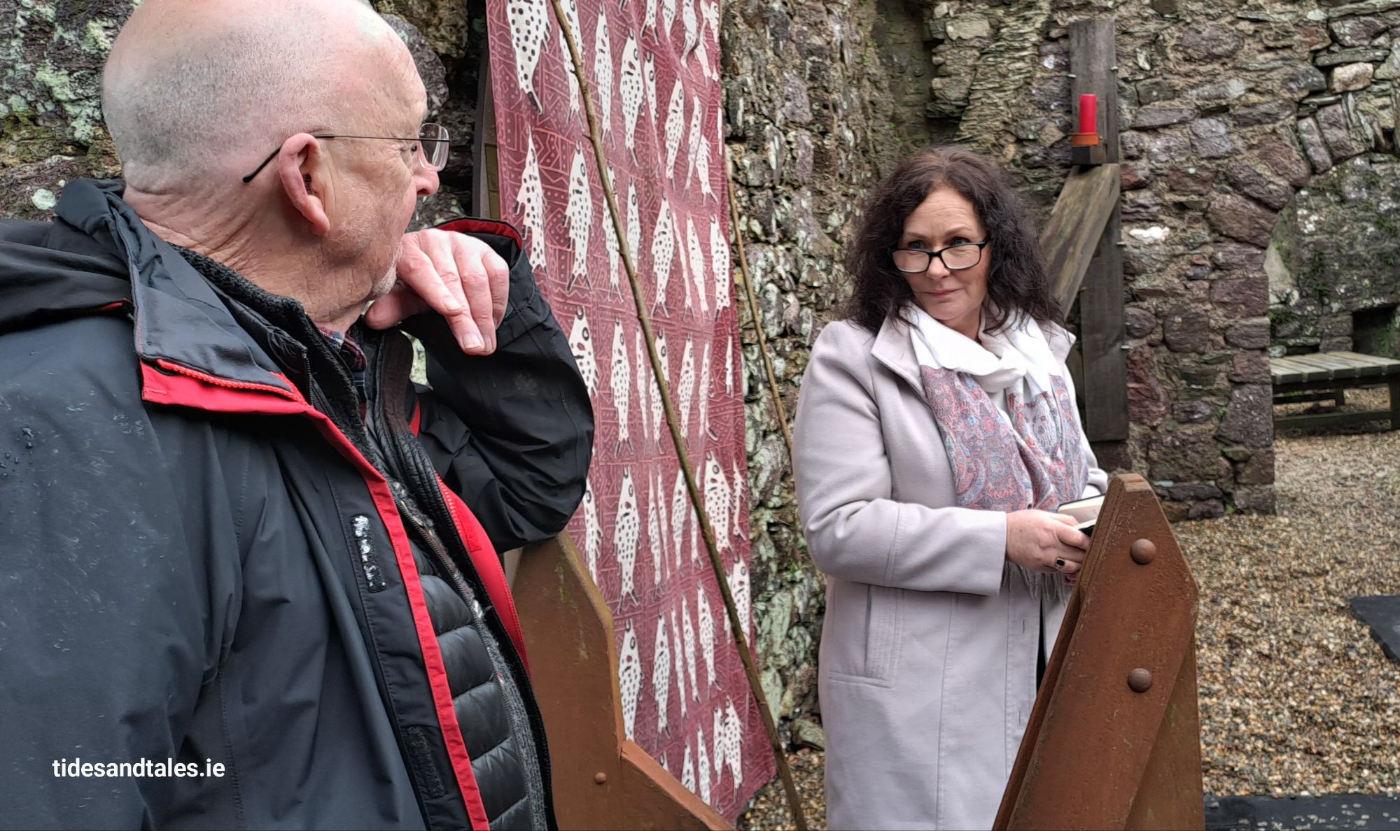 We were very fortunate to have the assistance of John Tierney of Eachtra Archaeological Projects, who generously created the dynamic QR codes which are located here on the Tides & Tales website. The board was designed, created and erected by Signatec in Kilkenny, led by David Murphy, who displayed infinite patience and creativity. We had crucial input from Máire Seó Breathnach, who approved and critically tweaked the Irish translation. The project was funded very generously by the Heritage Officer of Waterford City & Co Council, Bernadette Guest and unveiled by Pat Murphy’s son Paul, with his aunt, Sr Ann Murphy. Sr Ann decided to give the honour over to a student from Faithlegg. Thea Thompson kindly stepped forward. We had hoped that Pat’s wife, Margaret, could attend. However, she was ill at the time, but subsequently saw a video of the event taken by her grandson. Margaret has since died, January 28th 2026. We extend our deepest sympathy to the family.