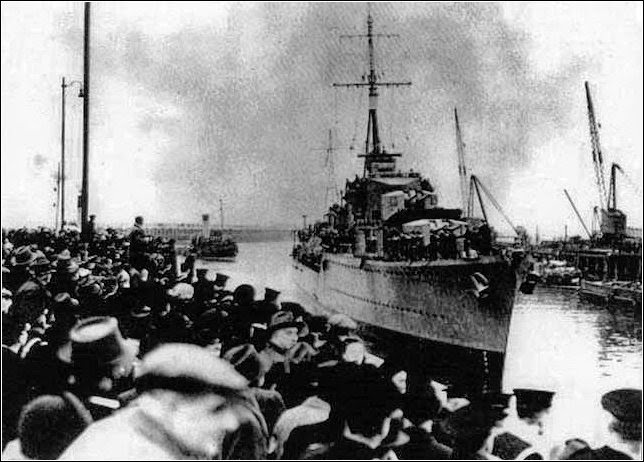 All the freed “Prisoners of war” were taken aboard the Cossack and she departed for Leith the following day. Some footage of their Ariving back to England was taken by the Pathe News. I fancy I can make out Pat, but I could be wrong.