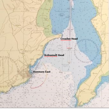 Waterford Harbour: Chart showing Creaden and Ardnamult Heads, NE of Dunmore East.